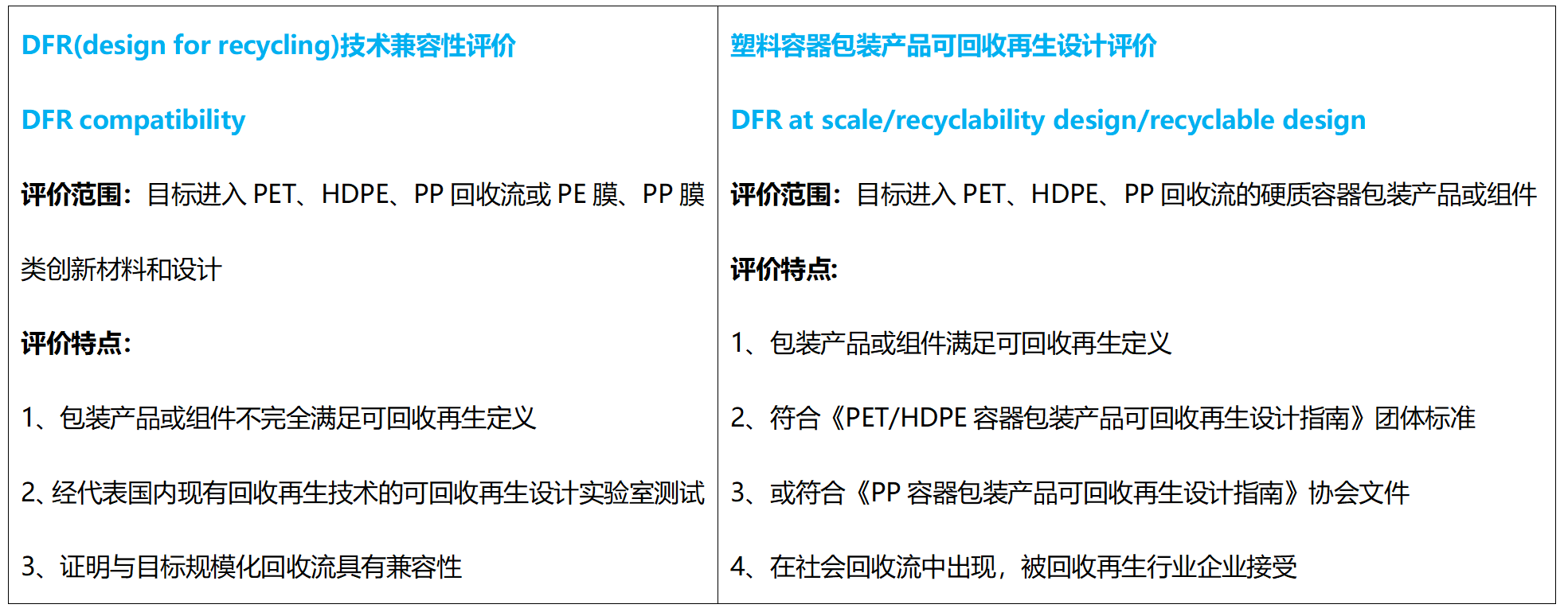 V marci 2022 boli štandardy skupiny China Synthetic Resin Association „Príručka dizajnu pre recykláciu a recykláciu polyetyléntereftalátových (PET) nádob a obalových produktov“ a „Návodná príručka pre recykláciu a recykláciu nádob a obalových produktov z polyetylénu s vysokou hustotou (HDPE)“. Oficiálne vydané súčasne s „Hodnotením recyklovateľného dizajnu plastových obalových produktov“ a vydaná prvá séria hodnotených dizajnových prípadov produktov.