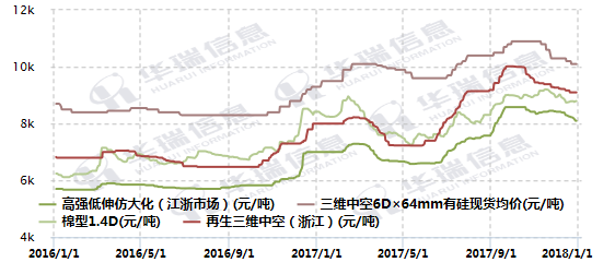 Z obrázku je vidieť, že po poklese v rokoch 2014-2015 dosiahol dno v druhej polovici roka 2016 a vyvrcholil plošne v roku 2017. Rok 2017 je skutočne najlepším rokom pre rozvoj recyklácie za posledných päť rokov, počas ktorých vysoká cena recyklovaného dutého materiálu prevyšuje nízku pôvodnú cenu, ale zákaz pevného odpadu narúša rovnováhu surovín a výhody recyklovaného chemického vlákna sa postupne znižujú, našťastie, spoliehajúc sa na skoré hromadenie surovín a dopĺňanie polyesterových čipov hladko prebehlo, v spojení s rokom 2018 je pokračovaním predchádzajúceho vyvrcholenia a následným okienkom pred rozšírením celej rady polyesteru, stále je možné zarábať na vzostupoch a pádoch PTA a polyesteru.
