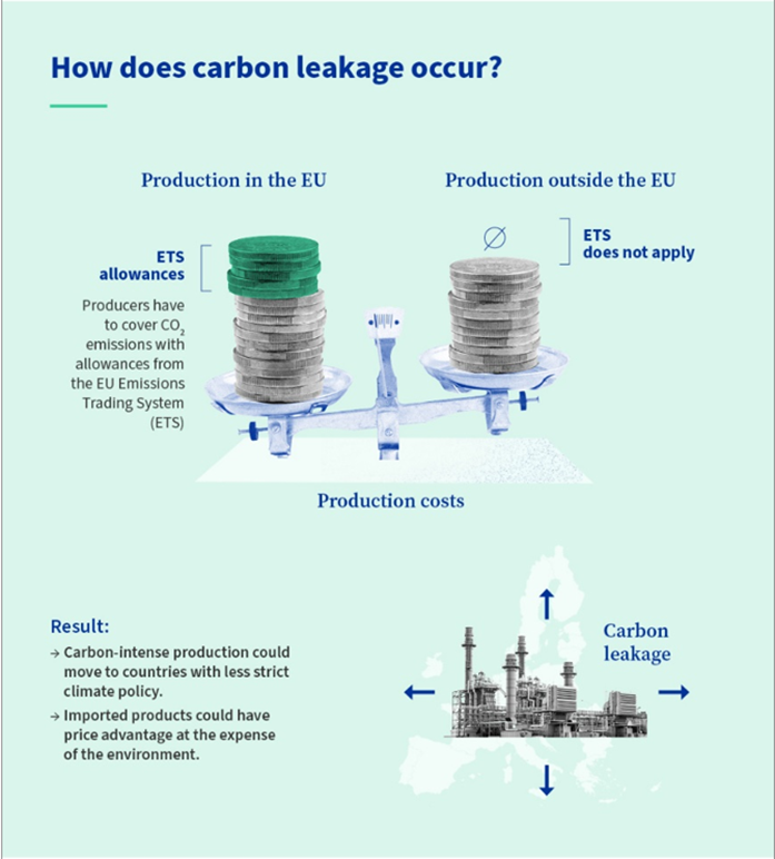 Cieľom CBAM je zabrániť úniku uhlíka, ktorý odkazuje na skutočnosť, že prísnejšia dvojuhlíková cesta v regióne povedie k zvýšeniu nákladov na uhlík v regióne, čo prinúti spoločnosti vyrábajúce produkty s vysokým obsahom uhlíka prejsť na nízkouhlíkové oblasti uhlíkových nákladov, čo vedie k priemyselnému transferu. Podľa dvojakého uhlíkového plánu EÚ sa uhlíkové kvóty budú postupne sprísňovať, až kým sa nezrušia, a zodpovedajúcim spôsobom porastú uhlíkové náklady podnikov a zvýši sa aj cena produktov s vysokým obsahom uhlíka, čo povedie k tomu, že trh bude dovážať produkty s vysokým obsahom uhlíka mimo EÚ alebo presun výrobných liniek produktov s vysokým obsahom uhlíka do oblastí s nízkouhlíkovými nákladmi mimo EÚ, čo poškodí hospodárstvo EÚ. Ako domáci a zahraničný mechanizmus bilancie uhlíkových nákladov CBAM do určitej miery zníži výskyt úniku uhlíka.